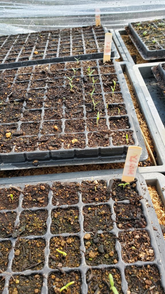それから、ナス、ピーマン、トマトなども先日種まきし、ようやく芽が出てきました!芽がかわいい!